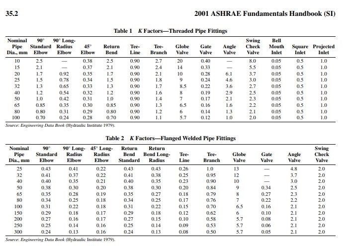 Рис. 9. Выбор таблиц ASHRAE соединительных деталей трубопроводов