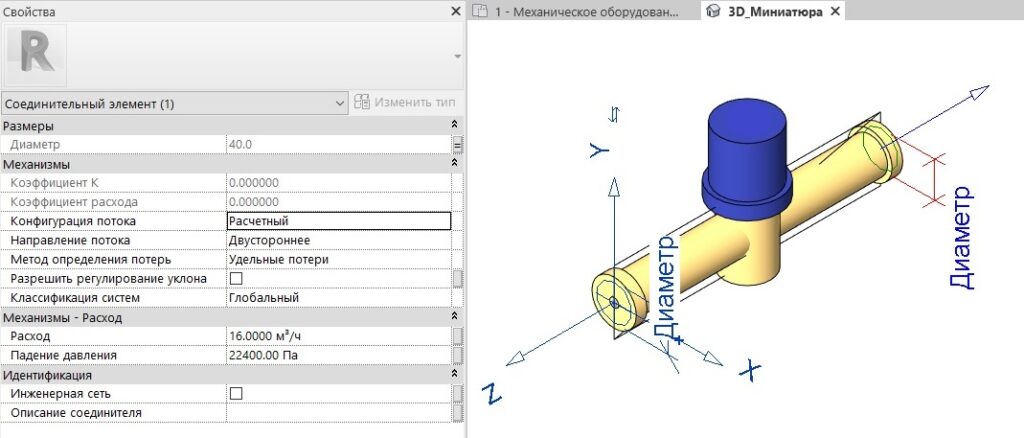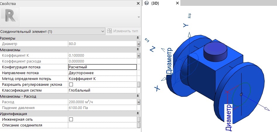 При этом необходимо помнить, что если потери давления или коэффициент местного сопротивления будут назначены обоим коннекторам семейства, то в расчетах они будут учтены дважды.
